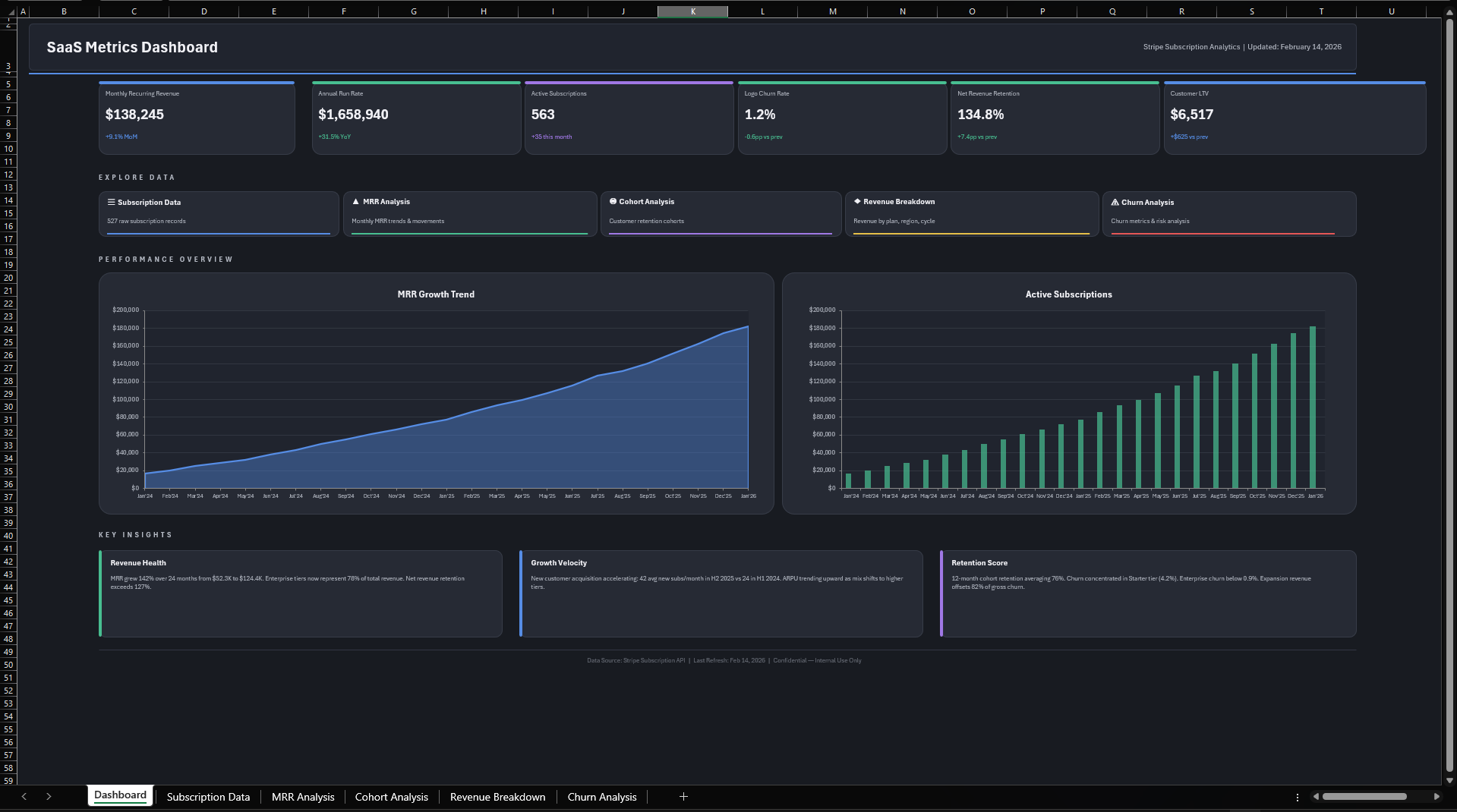 Pipeline data from Salesforce or HubSpot, transformed into KPI dashboards in Excel. Refreshed daily.